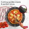 - EFFICIENT DESIGN: This pizza tray features convenient cutting guides that make it easy to serve perfect, even slices, every time. The bottom of the round oven pan also has feet to keep the hot pan elevated and off the countertop, preventing heat damage.