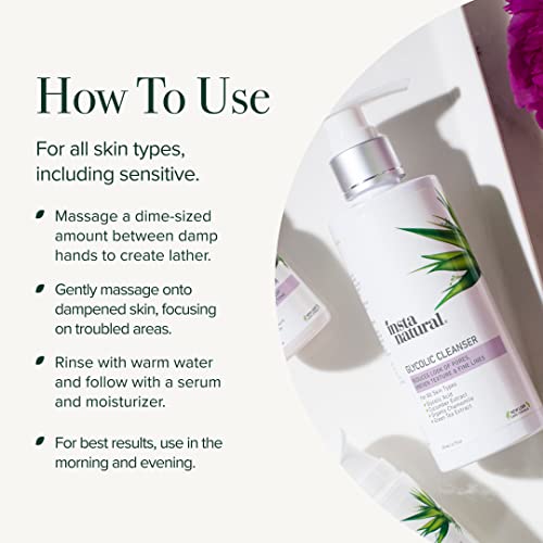 Details: Our deep cleansing Glycolic Skin Cleanser uses the exfoliating benefits of Glycolic Acid to break down dulling build up, helping to soften and brighten the skin. Infused with natural calming extracts and collagen supporting Arginine, this gentle face wash helps reduce the appearance of pores, signs of aging and discoloration. Glycolic Acid works to remove pore-clogging skin cells that can cause skin to break out while Arginine supports the production of collagen. The exfoliating face wash ingredients increase cell turnover, helping to slough away dulling skin cells and reduce the appearance of fine lines, discoloration, and acne scars. InstaNatural’s Glycolic Cleanser is a great option for those looking for a face wash for oily skin, pore cleanser, foaming face wash, or acne cleanser. In addition, it can also be used as an exfoliating body wash for acne and other skin concerns. This gentle face cleanser is perfect for all skin types, including oily, dry, combination, sensitive, acne prone, and mature skin. Along with a great option for men, women, teens, and adults. Designed to give you skin that feels cleaner without drying it out, you can start to restore your complexion to its amazing and natural beauty. face exfoliator anti aging cleanser acne face wash for women clean and clear face wash mens face wash organic face wash glycolic acid face wash acne wash oil cleanser acne body wash korean face wash acne scar acne scar treatment organic facial cleanser facial wash body acne pores no more body acne wash vegan face wash salicylic acid face cleanser sensitive skin face wash glam glow moisturizer chemical peels for face face wash for men acne free acnefree face wash simple face wash face washer travel size face wash travel face wash lush face wash alpha skin care acne treatment teens 10 20 image shop treatments routine makeup supplements hormonal washes herbal hypoallergenic 3 1 japan male girls scrubber jojoba reducing minimizer pimples exfoliant