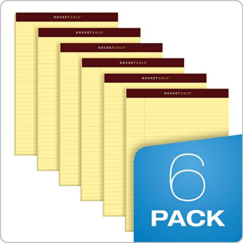 Details: TOPS Docket Gold Writing Pads feature premium-weight paper for a smooth and pleasant writing experience. Your pen will glide for flawless notes with minimal ink bleeding and show through. Durable headtape bindings firmly secure your pages while our Letr-Trim perforated sheets detach cleanly to keep your legal pad looking neat and professional. An extra-strong back provides firm writing support. This smaller, portable size is ideal for quick notes or meetings. Every Docket Gold writing pad is proudly made in the USA.Canary. 5″ x 8″. Jr. Legal Rule. 50 Sheets. 12 Pack.A Golden Opportunity: We designed a simple, elegant writing pad for the busy professional who admires superior note-taking features.Worth Its Weight: Our premium paper allows your pen of choice to glide across the page for smooth notetaking; pages resist ink bleeding and show through so your thoughts flow on, not through the page.Built for Life On The Move: Our extra-strong back lets you take notes on your lap or as you stand and hurry through your day. This durable backing board is twice as thick as those on standard notepads.Make a Clean Break: Not all perforations are the same. Letr-Trim perforations are made to hold pages securely, so the notes you want stay and the notes you don’t detach cleanly without effort.Simple & Effective: The classic legal pad format long preferred by attorneys and professionals gives you quick access to notes and lists; flip to a fresh page and continue your thoughts.
